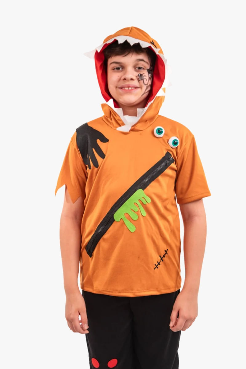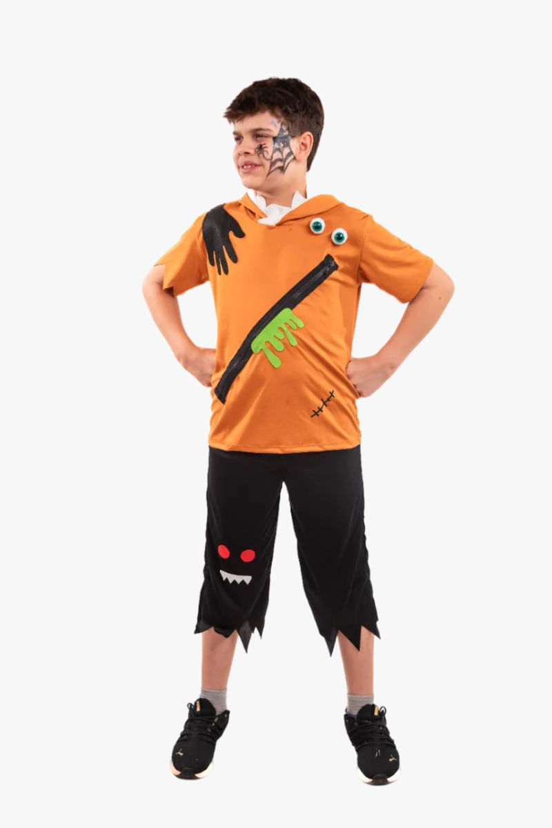 Apresentamos a Fantasia do Monstrinho, uma opção assustadoramente linda e incrivelmente diferente, perfeita para destacar seu filho em qualquer festa de Halloween!Características Principais:· Design Único e Divertido: Essa fantasia é um conjunto de bermuda e camiseta com capuz, criada para garantir que seu filho seja o centro das atenções. O visual diferenciado e único promete fazer sucesso onde quer que ele vá.· Conforto e Flexibilidade: Feita com tecido molinho e confortável, essa fantasia proporciona liberdade de movimento, permitindo que seu filho aproveite ao máximo as brincadeiras de Halloween.· Detalhes Artesanais Ricos: As duas peças são ricamente decoradas com elementos artesanais, incluindo gosma, olhos, mão, e estampa de remendo, que adicionam um toque de criatividade e diversão à fantasia.· Capuz Monstruoso: O capuz tem a parte interna vermelha e vem com dentes, orelhas, e olhos do ursinho monstro, inspirado diretamente do game, trazendo uma pegada moderna e divertida para o Halloween.Conteúdo do Pacote:· Camiseta com capuz decorado.· Bermuda com detalhes artesanais.