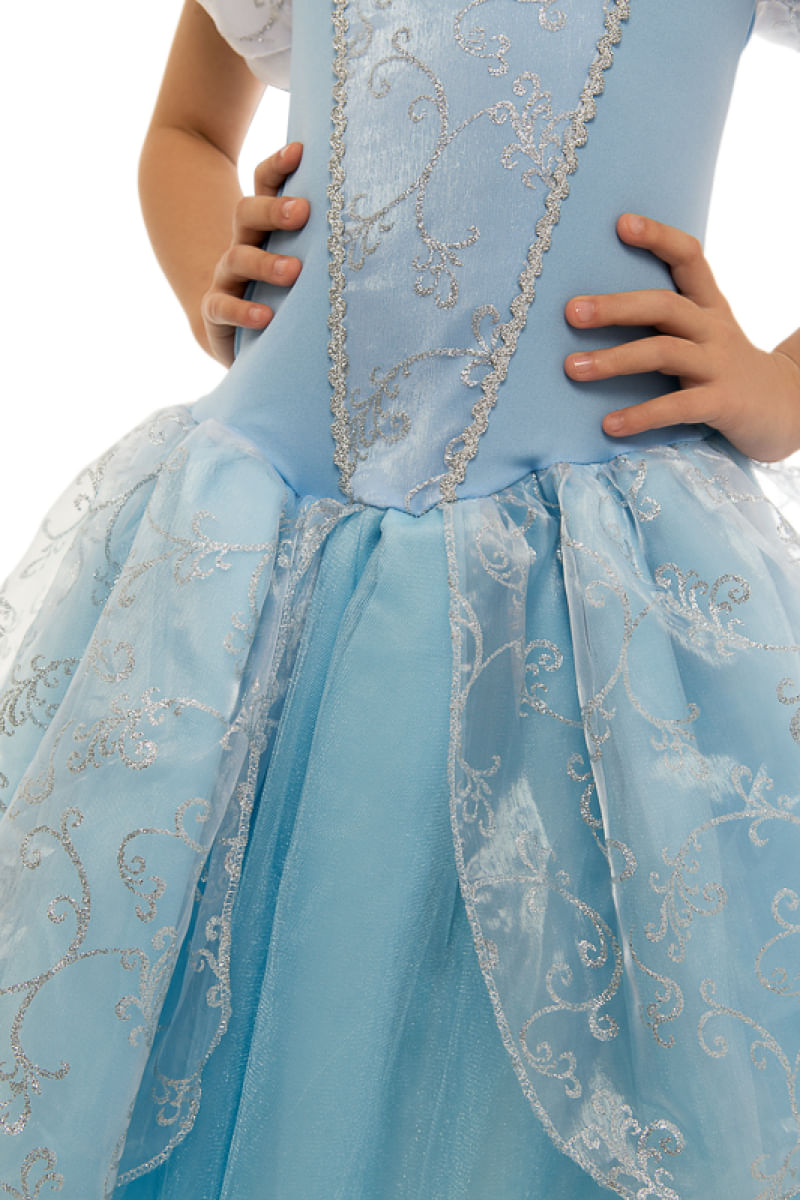 Detalhes Encantadores: Apresentamos o Vestido Infantil Longo Azul, inspirado na elegância e magia da Princesa Cinderela. Cada detalhe deste vestido foi cuidadosamente elaborado para transformar sua pequena em uma verdadeira princesa de conto de fadas. As mangas fofas são revestidas de organza glitada em tom prata, adicionando um toque de brilho e sofisticação. O corpo superior colant de helanca proporciona conforto inigualável, enquanto o detalhe de organza glitada e galão prata eleva o visual para um nível digno da realeza. Saia de Sonhos em Tule Azul: A saia em tule azul é um verdadeiro sonho! Com detalhes de organza glitada e um forro em bember e tnt, ela oferece movimento e elegância a cada passo. Sua pequena se sentirá como se estivesse dançando no famoso baile do castelo.