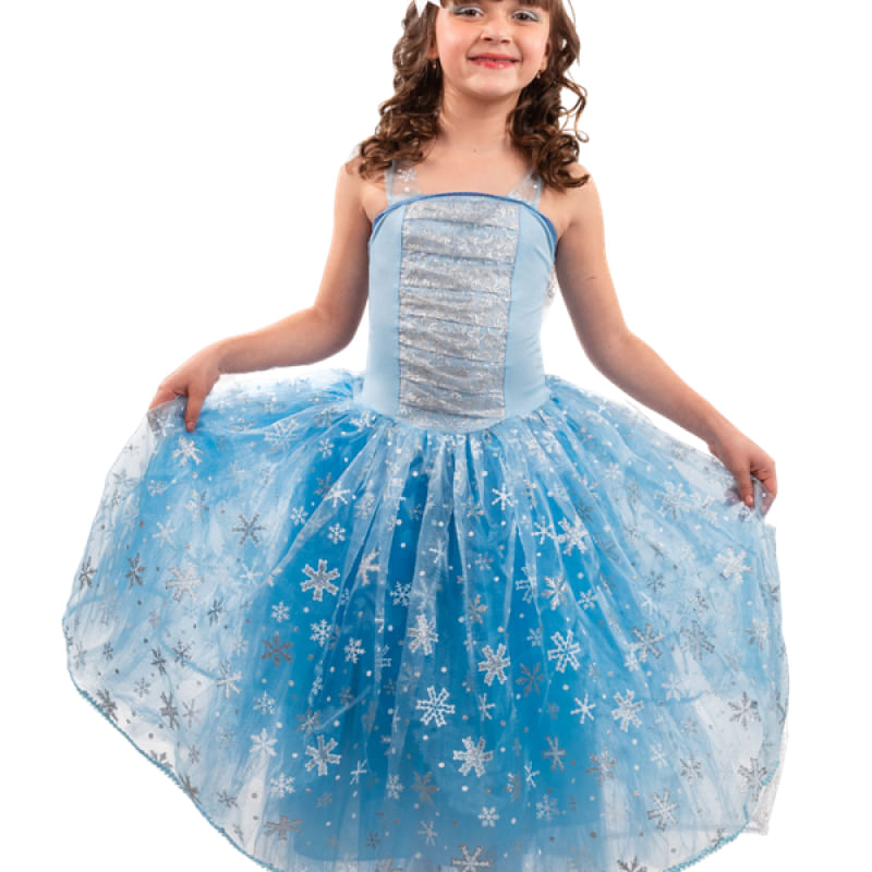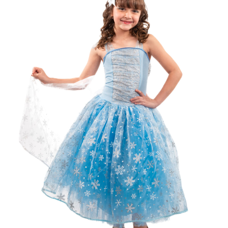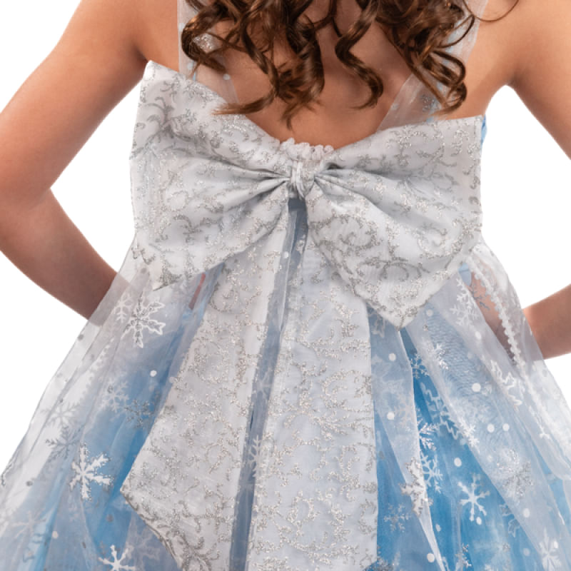 Tiara com Laço Azul e Floquinhos de Neve: Para completar o visual, o vestido acompanha uma tiara encantadora. Com um laço azul e delicados floquinhos de neve, esta tiara adiciona o toque final perfeito, transformando sua pequena em uma verdadeira princesa do gelo.