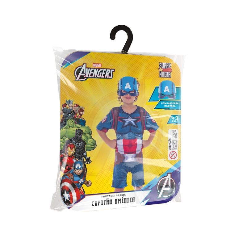 FANTASIASFANTASIA INFANTILFANTASIA DE HEROIFantasia - Marvel - Capitão América - Básica - Tamanho P - Novabrink