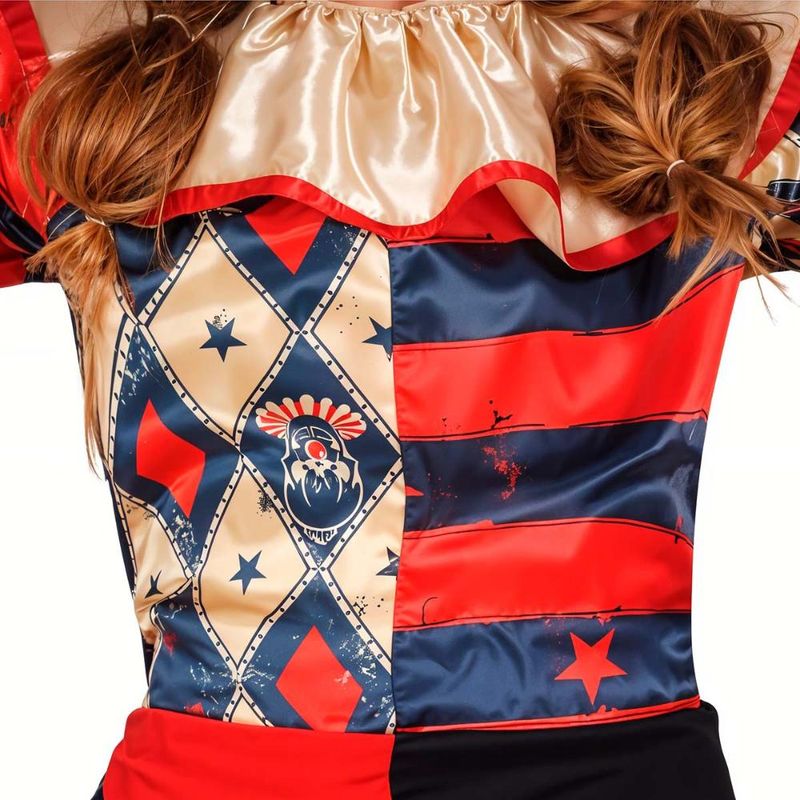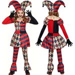 A Fantasia Palhaça Arlequina Infantil é inspirada no estilo arlequim, esta fantasia traz uma pegada sombria e divertida, com cores vibrantes, chapéu clássico e calça flare que encantam. Perfeita para meninas ousadas que amam interpretar e se destacar no Halloween, Carnaval, festas escolares e apresentações. O tecido confortável e o design criativo garantem liberdade de movimento e estilo marcante. Vista sua pequena com personalidade e atitude! A fantasia vem com camisa estampada, colarinho acetinado, calça com elástico e chapéu icônico combinando. Um look completo para quem quer arrasar no visual e nas selfies! Destaques do Produto: Estampa arlequim clássica com cores vibrantes Chapéu com pontas e pompons pretos Camisa com velcro para vestir fácil Calça flare com elástico na cintura Colarinho bufante acetinado Ideal para Halloween, teatrinhos e festas temáticas Confortável e com ótimo caimento Itens inclusos: camisa, chapéu, colarinho e calça (LUVAS NÃO INCLUSAS)