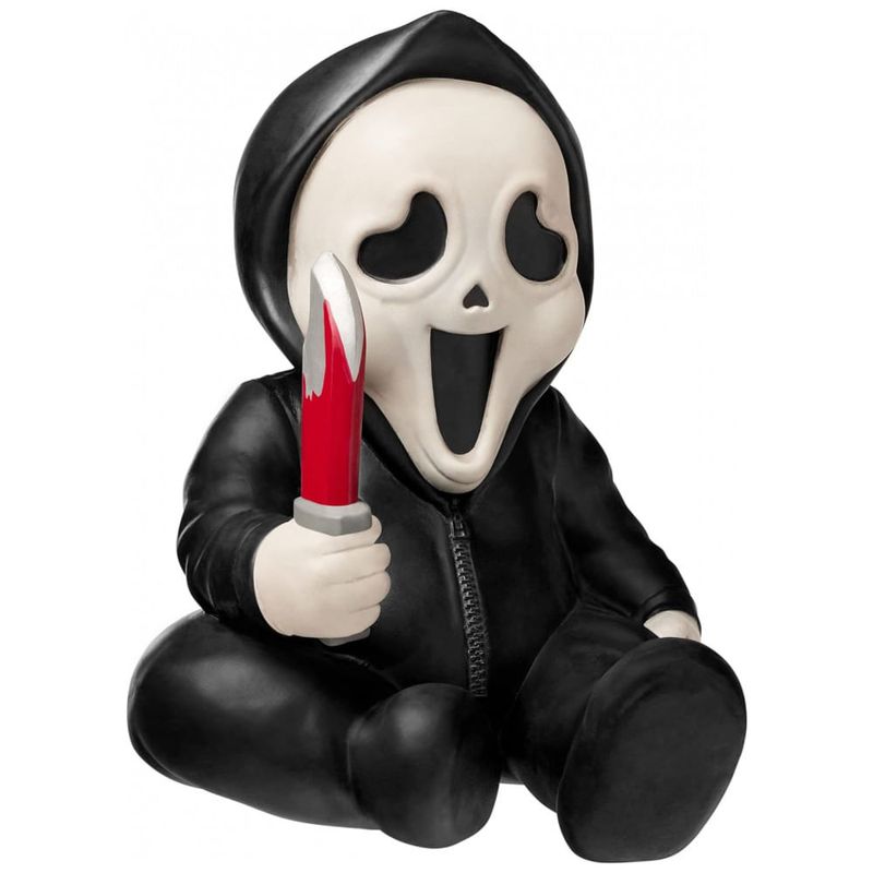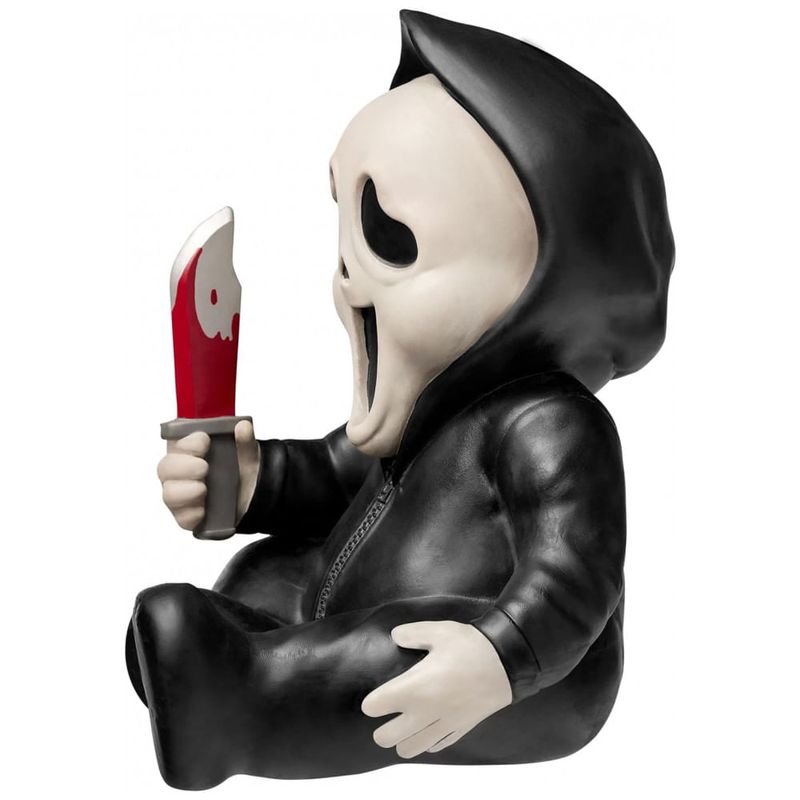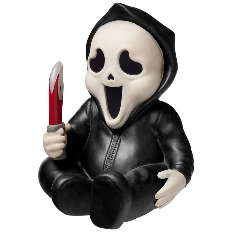 Este adorável bebê de terror Ghost Face tem 34 centímetros de altura e tem o tamanho perfeito para caber confortavelmente em qualquer prateleira, mesa ou chão da sua casa. Adicione à diversão do Halloween colocando o em exibição em qualquer local inesperado para assustar todos os seus amigos .