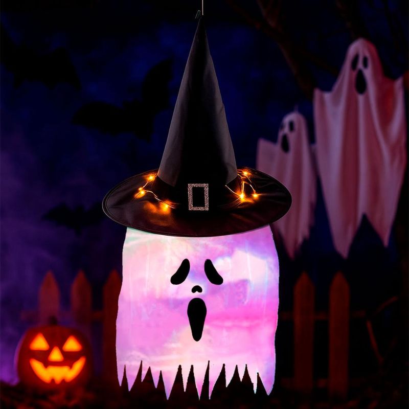 DATAS COMEMORATIVASENFEITES E DECORAÇÃOFantasma Halloween com Chapeu de Bruxa Led Decoração pra Pendurar