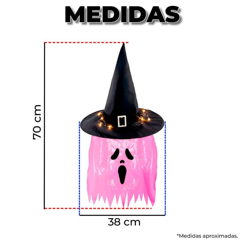 Fantasma Halloween com Chapeu de Bruxa Led Decoração pra Pendurar