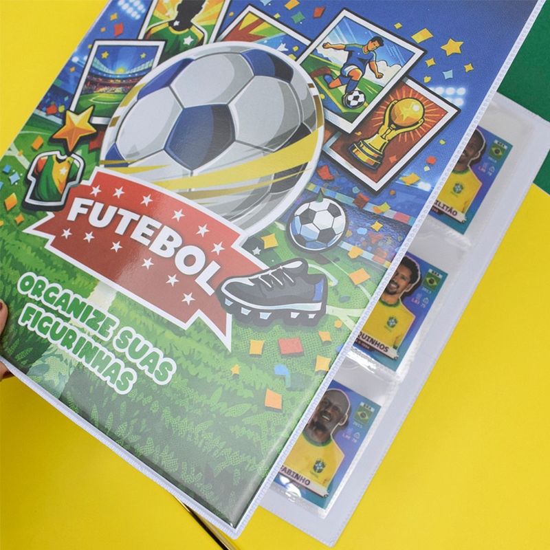 Com design colorido e esportivo, é perfeito para fãs do futebol manterem a coleção segura, organizada e pronta para trocar ou exibir.