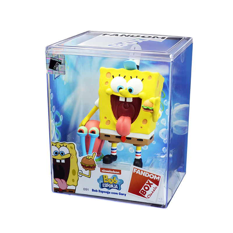 Conheça esse superlançamento que chegou direto da Fenda do Bikini. A Fandom Box orgulhosamente apresenta a edição especial de 25 anos do Bob Esponja que vem acompanhado do seu caracol de estimação Gary, além de vários detalhes que relembra a diversão do desenho: ele com um delicioso hamburger de siri e ainda com seu quepe de trabalho no Siri Cascudo. O colecionável da Fandom Box é único que além do boneco traz uma case transparente que além de proteger ainda expõe de forma única o personagem.
