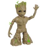 GROOT CRESCE: Basta apertar o botão de folha no seu pé para vê-lo crescer de 34 cm a 45 cm; REAGE A SONS E MÚSICA: As crianças podem tocar as suas músicas favoritas para Groot dançar. Groot responde "I am Groot" se falarem com ele ou fizerem ruídos; POSAR E BRINCAR: A figura Groove 'N Grow Groot possui cabeça móvel e braços articulados para brincar ou posar; EU SOU GROOT: Não há como proteger a galáxia desse pequeno Groot travesso! O bebê Groot ocupa o centro do palco em uma série de curtas que exploram seus dias de glória crescendo e se metendo em problemas; GROOT É TÃO LINDO: Outros brinquedos Groot lindos e adoráveis inspirados no seriado I Am Groot da Disney+, que acompanha as incríveis aventuras do pequeno Groot! (Vendidos separadamente. Sujeitos à disponibilidade.) A figura interativa Groove 'N Grow Groot é inspirada no seriado I Am Groot da Marvel na Disney+. Groot possui cabeça móvel e braços articulados para que as crianças a partir dos 4 anos possam brincar e colocá-lo em diversas posições. Basta apertar o botão de folha no seu pé para vê-lo crescer de 34 cm a 45 cm. Groot responde "I am Groot" se falarem com ele ou fizerem ruídos. As crianças podem tocar as suas músicas favoritas para Groot dançar. Groove 'N Grow Groot é um brinquedo Marvel especial para crianças e adultos fãs do personagem. Copyright 2023 MARVEL. 2023 Hasbro. Hasbro e todos os termos relacionados são marcas comerciais da Hasbro.