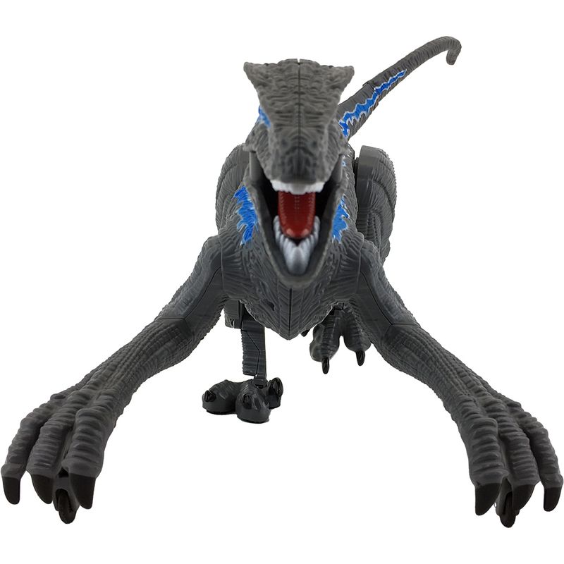 Dinossauro com movimentos e som. Utiliza controle remoto de 7 funções. Funcionamento a bateria recarregável com carregar USB incluso e 2 pilhas AA para o controle não inclusas.