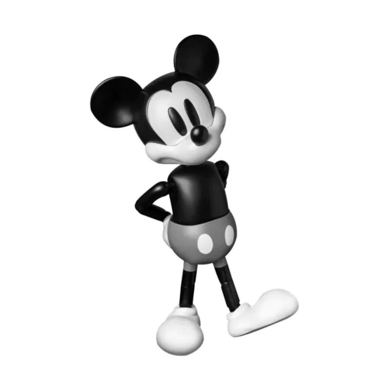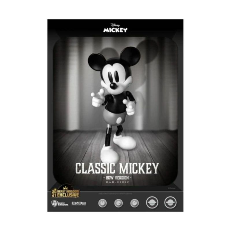 Criado em 1928 por Walt Disney e o desenhista Ub Iwerks no curta animado mudo Plane Crazy, o personagem de animações Mickey Mouse se tornou o símbolo da Walt Disney Company. Um camundongo antropomórfico que evoluiu de ser simplesmente um personagem de desenhos animados e quadrinhos para se tornar um dos símbolos mais conhecidos do mundo. Mickey teve a sua estreia com o desenho sonoro intitulado "Steamboat Willie", que foi o primeiro desenho animado sonoro e James G. MacDonald foi a voz do Mickey até falecer em 2009. Atualmente, Mickey é dublado por Bret Iwan. Os quadrinhos de Mickey foram publicados pela primeira vez no Brasil na revista O Tico Tico em 1930, nessa publicação Mickey chamava-se Ratinho Curioso. A série de figuras DAH (Dynamic 8ction Heroes) da Beast Kingdom são altamente articuláveis está trazendo à vida uma figura icônica. Com design retrô em preto e branco direto dos primórdios do cinema de animação o Mickey Classic é uma verdadeira sensação retrô. Essa figura clássica celebra quase um século que ele nos leva a aventuras e mundos fantásticos da Disney!