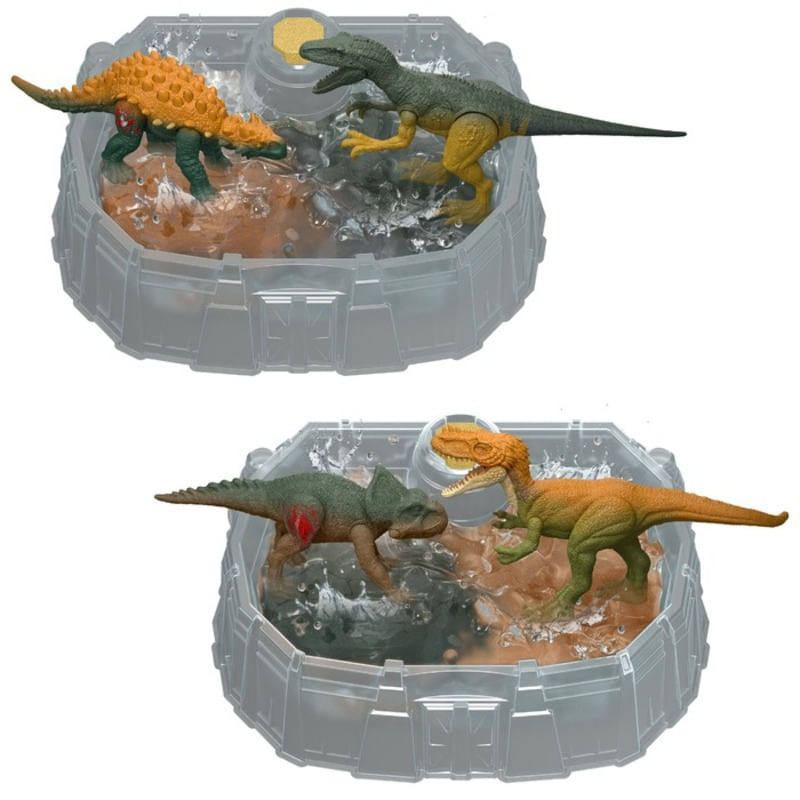 Inclui 2 brinquedos de dinossauro Jurassic World Dino Reveal, 1 contêiner Arena de Batalha e 1 esponja. As cores e as decorações podem variar.