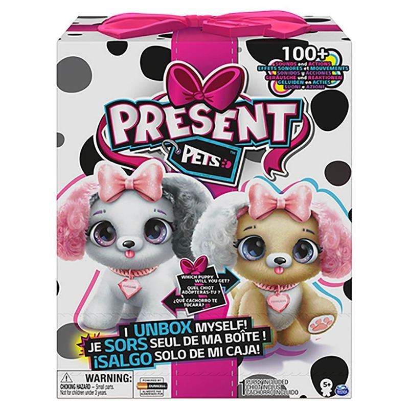 O pet mais fofo e interativo! Seu filhote de estimação está tão animado para conhecê-lo que abre sozinho a caixa de presente para sair e te encontrar! Abra a camada externa da caixa e puxe a etiqueta do presente para iniciar essa grande revelação. A caixa vai começar a tremer enquanto o seu cachorrinho está ansioso para sair! A parte da frente da caixa se abre revelando qual cachorrinho chegou pra você. Qual cachorrinho estava lá dentro? Princesa ou Kweenie? Cada filhotinho tem olhos muito expressivos, orelhas para baixo, pelo supermacio, detalhes em dourado nos acessórios e patinhas rosa. Além de muito fofos, eles possuem mais de 100 SONS E AÇÕES: Descubra a personalidade lúdica do seu novo pet! Ele dá beijos quando é abraçado; abana o rabo e embaralha as patas quando está excitado; responde à sua voz e muito mais! 6 baterias AAA inclusas.