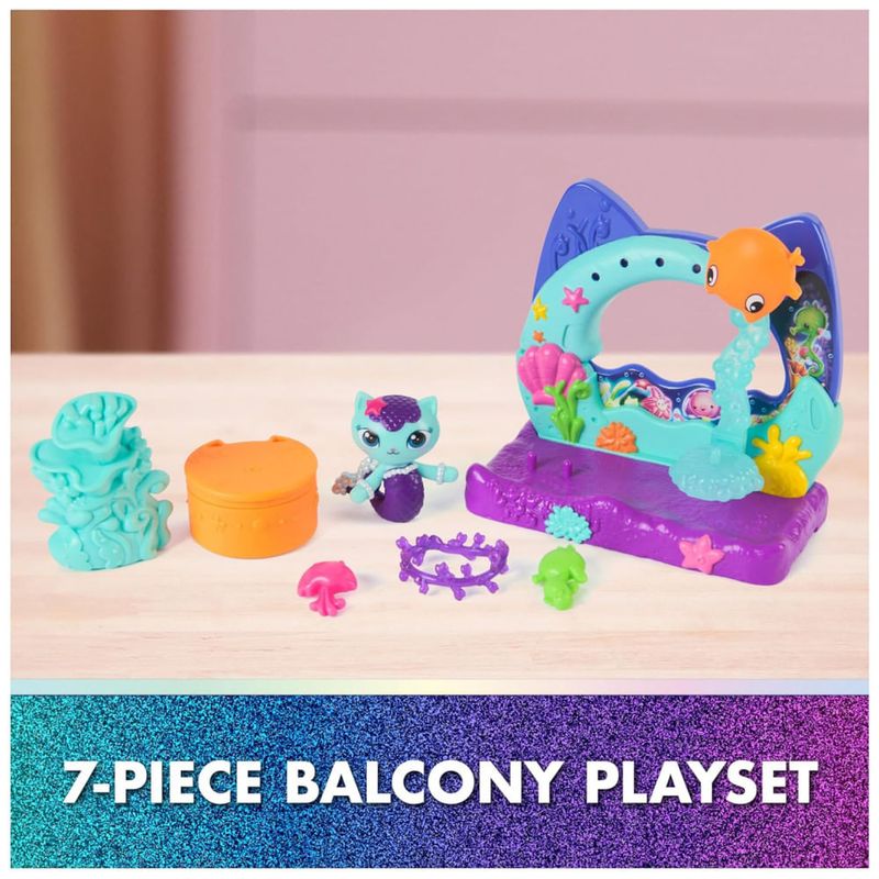 Reviva a magia do Filme Casa de Bonecas da Gabby, com o Aquário do Mercats na Sacada! Este encantador conjunto de brinquedos apresenta uma figura de filme MerCat, que encantará jovens fãs enquanto exploram. A sacada se conecta a qualquer uma das casas de bonecas da Gabby, proporcionando infinitas oportunidades para brincadeiras de faz de conta e aventuras criativas com esses encantadores brinquedos educativos. Com um pêndulo de bolha oscilante para uma brincadeira satisfatória e uma revelação escondida para descobrir, as possibilidades de contar histórias são infinitas. Abra o Envio da Casa de Bonecas, assim como Gabby faz no programa, para encontrar um acessório surpresa, depois escaneie o código QR para desbloquear uma surpresa no aplicativo Casa de Bonecas da Gabby. Este conjunto é uma maneira divertida de inspirar brincadeiras de faz de conta e convida a explorações incríveis, com esses adoráveis brinquedos de gato Gabby para crianças. Os brinquedos de casa de boneca da Gabby são presentes perfeitos para crianças reviverem momentos queridos do filme da Gabby, e para criar novas aventuras na casa de bonecas da Gabby, com brinquedos para crianças como acessórios de casa de boneca, móveis, seus incríveis amigos felinos e brinquedos de sereia, para horas intermináveis de aventuras felinas cada um vendido separadamente. O Aquário do Mercats no Filme Mágico da Gabby é um conjunto de 7 peças que inclui uma figura de MerCat temática de filme, acessórios de casa de bonecas e um pêndulo de bolha oscilante para brincadeiras satisfatórias. Brincadeira Versátil A sacada se conecta a qualquer uma das casas de bonecas da Gabby, crianças podem decorar com peças de encaixe, encontrar recursos ocultos, brincar com o fofo MerCat, móveis de casa de boneca vendidos separadamente. Inclui Brinquedo Surpresa Abra um envio de casa de bonecas, assim como Gabby faz no programa, para descobrir um acessório secreto para aprimorar suas aventuras incríveis, depois escaneie o código QR para uma surpresa no aplicativo. Crie um Mundo de Casa de Bonecas Com tudo, desde quartos temáticos e móveis de casa de bonecas até figuras de brinquedo, crie um mundo de casa de bonecas que ajuda as crianças a desenvolver sua imaginação através do faz de conta. Colecione Todos Os brinquedos de Casa de Bonecas da Gabby são brinquedos pré-escolares para crianças que adoram brincar com bonecas, acessórios, brinquedos surpresa, animais de pelúcia, brinquedos para meninas, quebra-cabeças e jogos de tabuleiro. Inclui 1 Conjunto de Brinquedos, 1 Figura de Filme MerCat, 5 Acessórios.