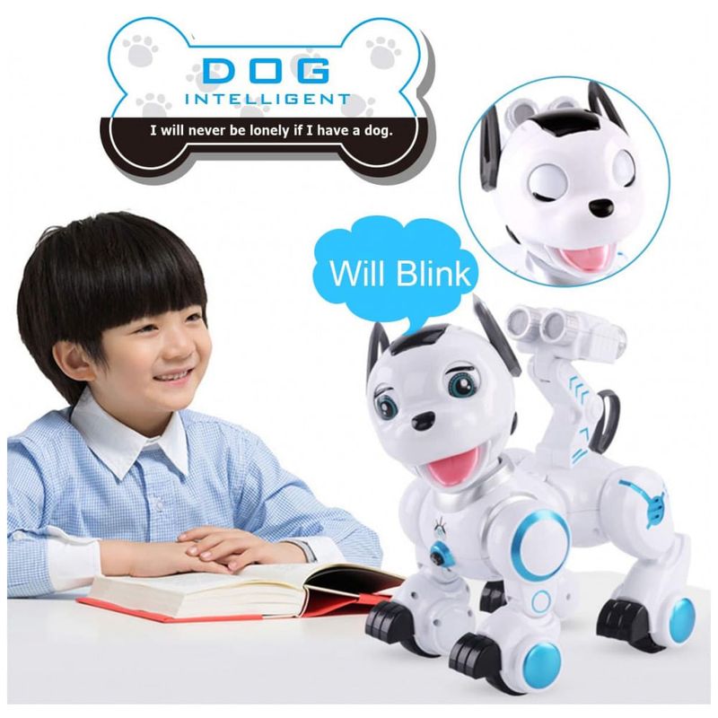 CÃO ROBÓTICO INTELIGENTE Ande para frente ou para trás, olhe para a esquerda ou direita, Demonstração, Patrulha, Pisque, Girar a cabeça. Todas as ações podem ser controladas pelo controlador. Seria um ótimo presente para uma criança.