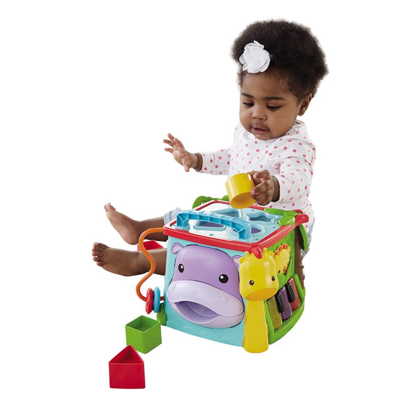 O Cubo de Atividades é um conjunto adorável para o bebê! Há muita coisa para descobrir com o cachorrinho que faz sons de chocalho e 4 formas para organizar! O brinquedo vem cheio de conteúdo educativo através de 8 ativações e 3 níveis de Smart Stages! O conjunto também traz atividades adicionais para o bebê como peça para girar, contas, interruptor de luz e árvore que gira.