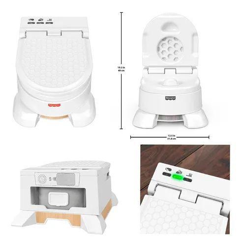 O Fisher-Price Troninho Deluxe 4 em 1 é como um vaso sanitário de verdade, só que menor. O assento do troninho permite que seu bebê aprenda a usar o banheiro e conta com alças fáceis de segurar que o ajudam a se sentir seguro, enquanto um penico removível facilita toda a limpeza. Quando for a hora de seu filho mudar para o vaso sanitário grande, a alça removível oferecerá o suporte necessário. Por último, o troninho pode ser convertido em uma escadinha de apoio na lateral da pia. Três botões de luz na parte traseira ativam ruídos de descarga realistas. Além disso, dois cronômetros de atividade pré-programados tocam músicas divertidas para incentivar hábitos saudáveis, como escovar os dentes e lavar as mãos.