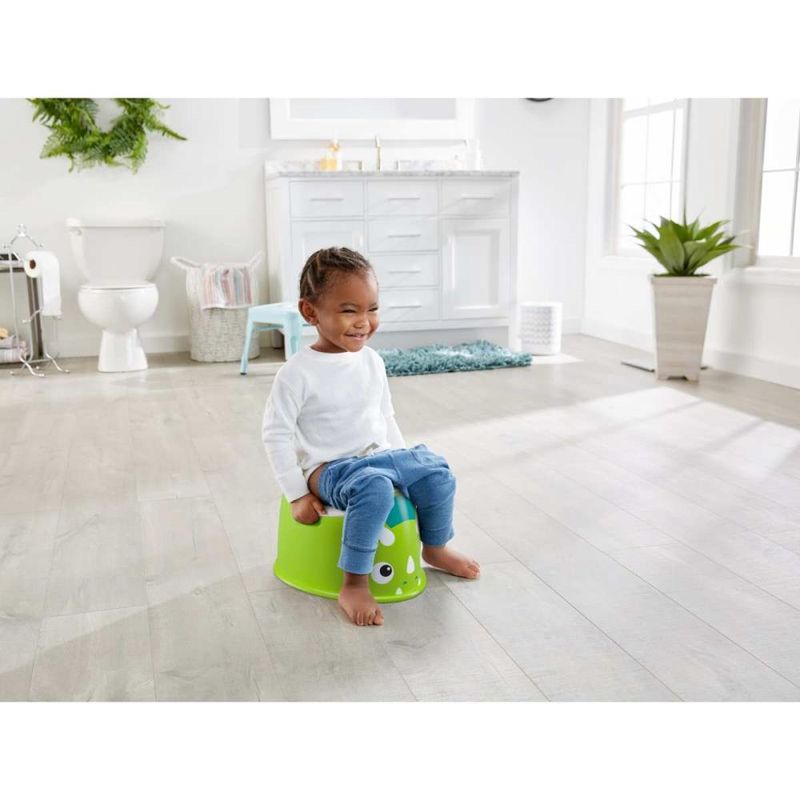 Todo mundo tem que aprender e o Troninho Dinossauro facilita o processo de treinamento como um bom amigo. Seu rosto amigável e alças fáceis de manusear ajudam as crianças a se sentirem mais confortáveis e seguras quando vão ao banheiro, enquanto o protetor contra respingos ajuda a tornar a limpeza rápida e fácil. Quando seu filho quiser fazer suas necessidades, o Troninho Dinossauro estará lá para ele.