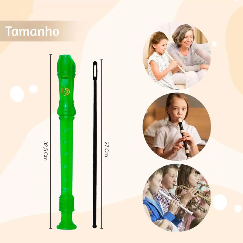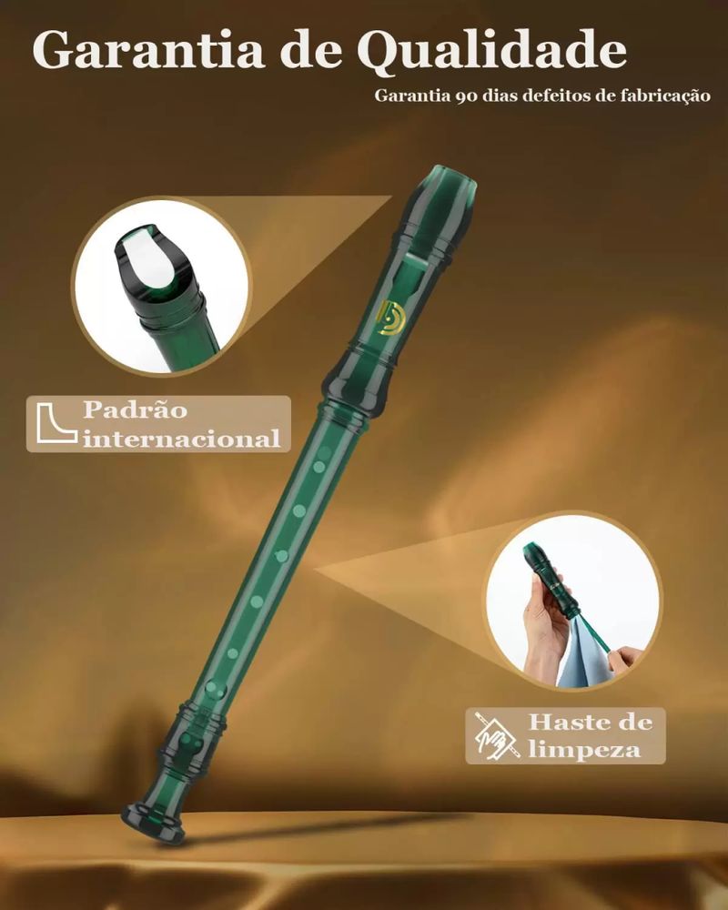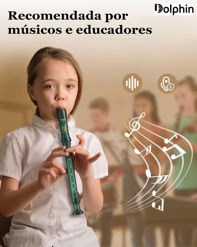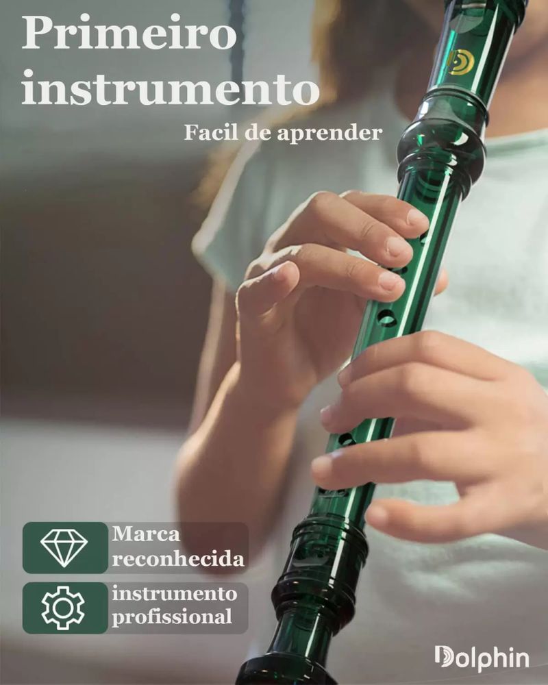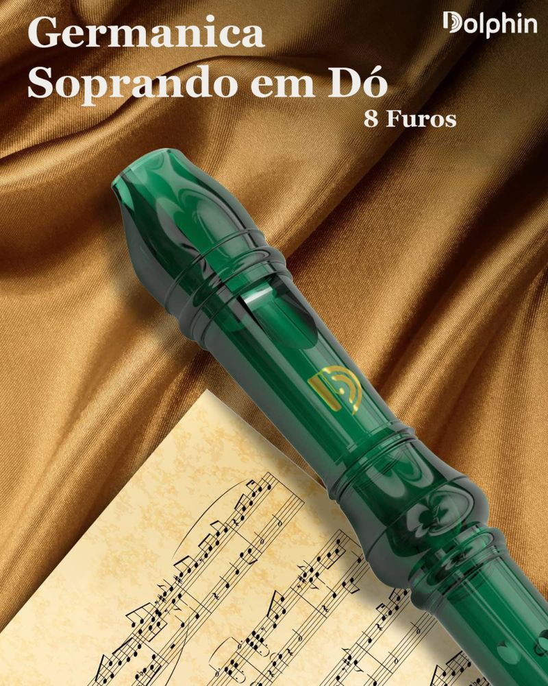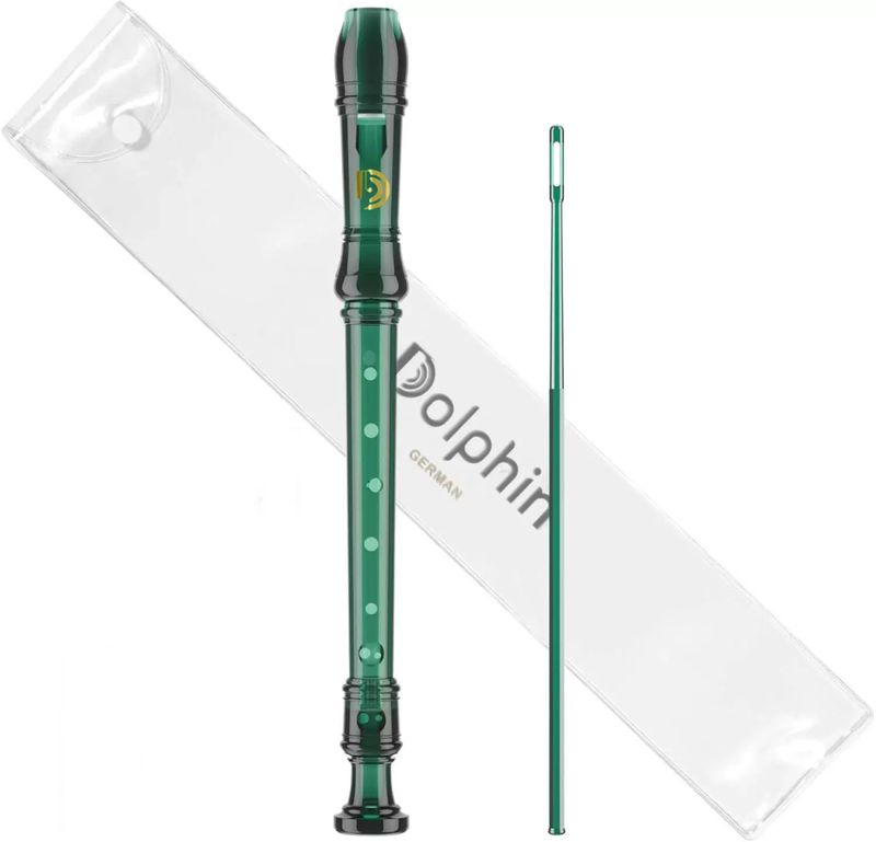 FLAUTA DOCE GERMÂNICA SOPRANO DÓ VERDE TRANSPARENTE DOLPHIN