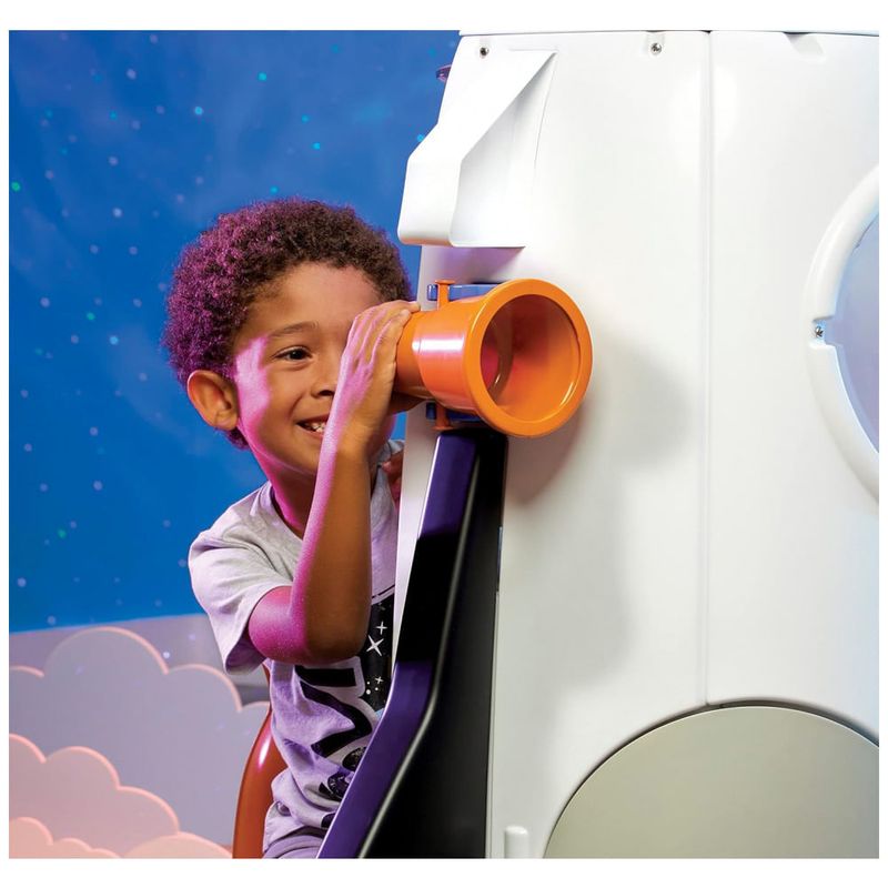 TONELAS DE ATIVIDADES Opere o centro de controle, olhe através do telescópio, observe as estrelas cadentes, rasteje pela escotilha de escape e aguente firme enquanto trabalha no painel de manutenção externo.