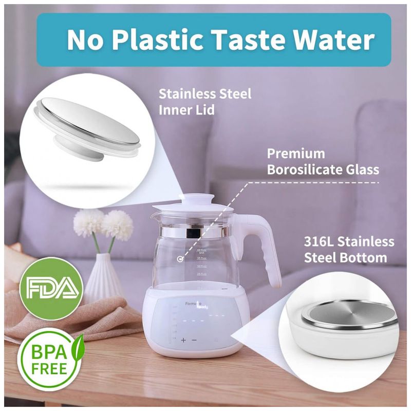 TEMPERATURA ÓTIMA PARA FÓRMULA Padrão para 40 C, a temperatura recomendada para a maioria das marcas de fórmulas. Fórmula totalmente dissolvida, sem destruir seus nutrientes e probióticos. O leite morno também ajuda a digestão do bebê, alivia cientificamente o refluxo infantil e a dor de estômago