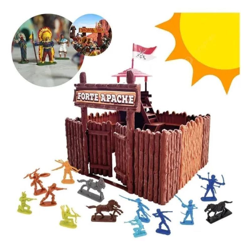 Esperte a imaginação dos pequenos com o Mini Forte Apache Kids Playset! Este incrível conjunto clássico é perfeito para criar aventuras emocionantes e vem com 16 peças para montar e 15 figuras coloridas que garantem horas de diversão.
