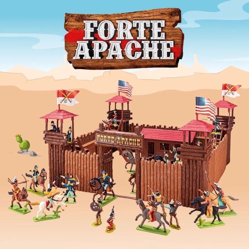 :: Conteúdo da embalagem: 11 Cercas; 1 Portal com Portas que Abrem e Fecham; 4 Torres; 4 Escadas às Torres; 2 Mastros com Bandeiras; 12 Figuras de Confederados; 12 Figuras Índios; 10 Cavalos; 1 Adesivo da Logo do Forte Apache;