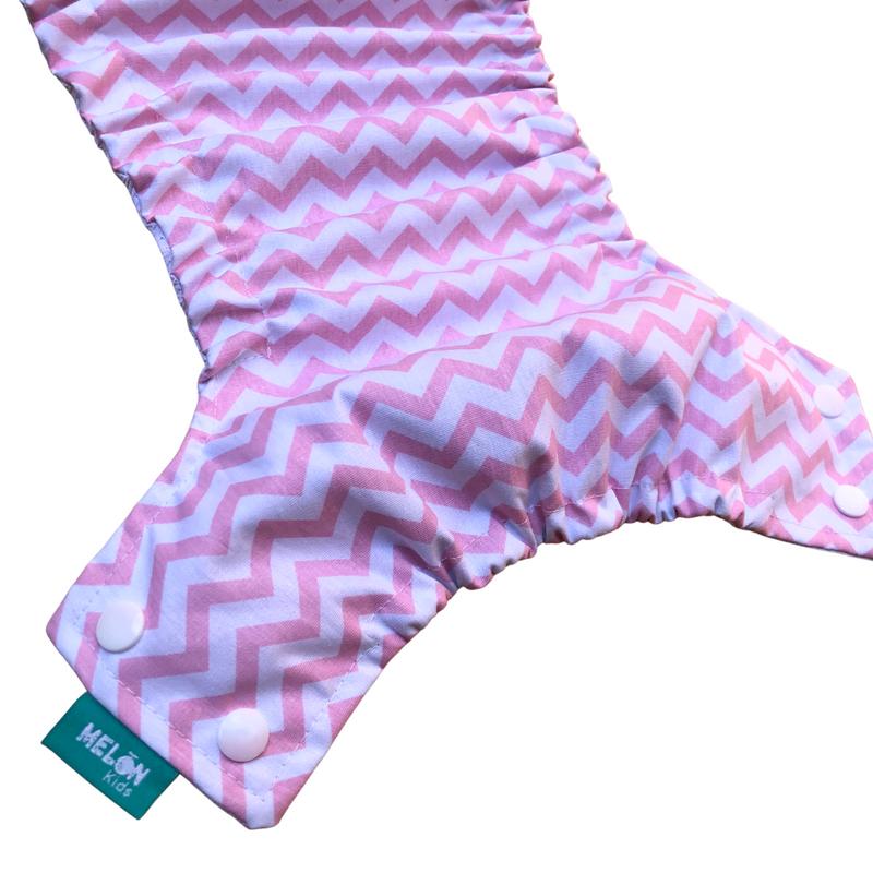 A Fralda Ecológica MELON KIDS Extra Grande, é ajustável através de elástico caseado, nas pernas e na cintura.