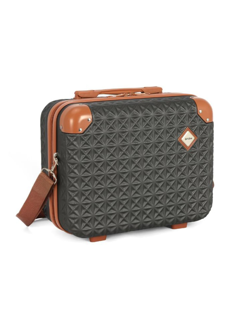 A frasqueira de viagem média Gash oferece praticidade, estilo e proteção para seus itens pessoais, combinando acabamento moderno com textura geométrica em ABS reforçado, garantindo durabilidade e leveza. Com dimensões de 38x32x17 cm e peso de apenas 1,2 kg, é ideal para organizar maquiagens, itens de higiene, eletrônicos e acessórios durante viagens, passeios ou uso diário.O design traz cantoneiras rígidas contrastantes, logo em detalhe metálico, pés de apoio para estabilidade e alça transversal ajustável, permitindo transporte confortável e versátil. O interior possui espaço bem distribuído para manter tudo organizado com facilidade.Dicas de uso: perfeita para levar como complemento da mala, organizar itens pessoais, produtos de beleza, medicamentos, pequenos eletrônicos e documentos durante viagens curtas ou longas.Dicas de limpeza: utilize pano macio levemente umedecido com sabão neutro; evite produtos abrasivos e esponjas ásperas para preservar a textura e o brilho do material.