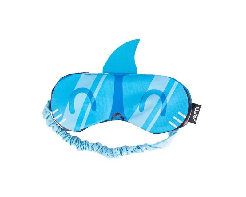 O tapa olhos tem um aplique simulando a barbatana do tubarão.