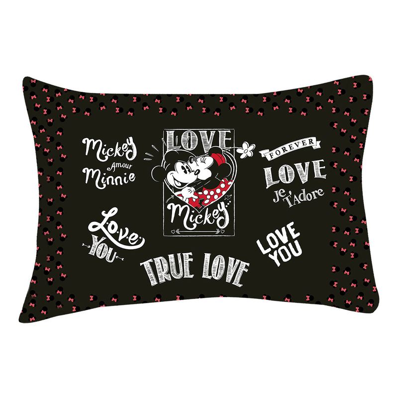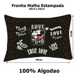 Conteúdo e Medidas: Fronha Malha Estampa Localizada Disney - Jadore Love Black - 01 Peça
