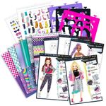 Variedade de opções para montar diferentes looks: estimula a criatividade e permite inúmeras combinações.Estímulo à imaginação para criar peças únicas: incentiva a originalidade e o desenvolvimento de habilidades artísticas.Contém 10 modelos, 6 tecidos, 2 folhas de adesivos e 2 moldes: oferece uma vasta gama de recursos para criações ilimitadas.