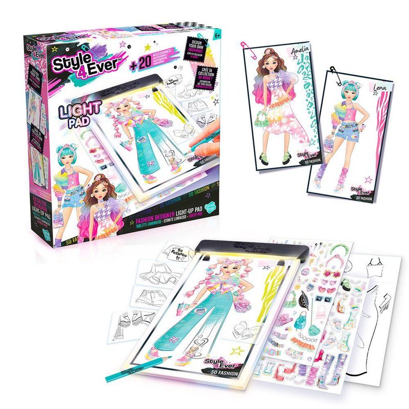 A prancheta luminosa supermoderna permite traçar com facilidade, dando vida aos designs.Vem com mais de 20 acessórios, incluindo moldes de roupas, folhas de adesivos e lápis de cor, oferecendo um kit completo para a criação.Estimula a criatividade e coordenação motora, desenvolvendo habilidades artísticas de forma divertida.Possibilita a criação de coleções únicas e personalizadas, incentivando a expressão individual.Inclui um cabo USB para manter o pad iluminado, garantindo praticidade no uso.