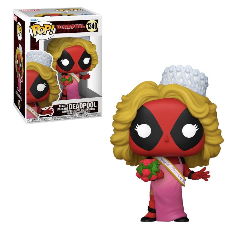 DESCRIÇÃO: Bem-vindo Pop! Beauty Pageant Deadpool. Ele está vindo com todo o seu senso de humor peculiar, para se juntar à sua coleção da Marvel. Pop! Beauty Pageant Deadpool está todo arrumado e usando uma coroa e uma faixa que diz: "O Mercenário Mais Bonito do Mundo". ITENS INCLUSOS: 01 - Funko Pop Deadpool 1340 Parody Beauty Pageant