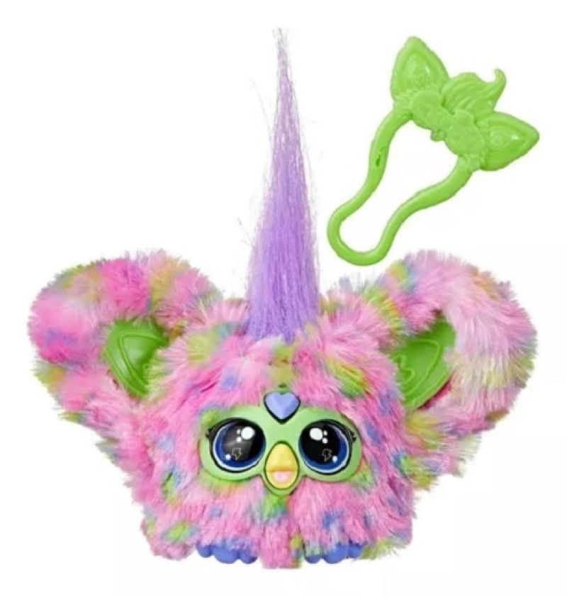 Furby Furblets Mini Eletronico - Hasbro Mini brinquedo eletrônico Furby para as crianças se divertirem, toca música e fala furbilês (não fala idiomas humanos). Pode ser pendurado em uma mochila ou em outra bolsa de viagem com o clipe de chaveiro para levar a festa dos Furblets para qualquer lugar.