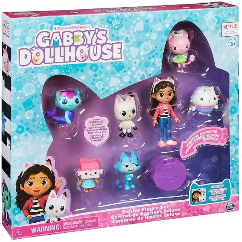 Leve para casa seus personagens favoritos da Casa de Bonecas de Gabby com o Conjunto de Bonecos Deluxe! Este conjunto de presente é obrigatório para os fãs de Gabby´s Dollhouse e vem com 7 figuras colecionáveis e uma Dollhouse Delivery com um acessório surpresa dentro. Adicione instantaneamente uma boneca Gabby de 9cm, além de outros personagens como Pandy Paws, MerCat, Cakey Cat, Kitty Fairy, CatRat e Baby Box Cat á sua coleção.