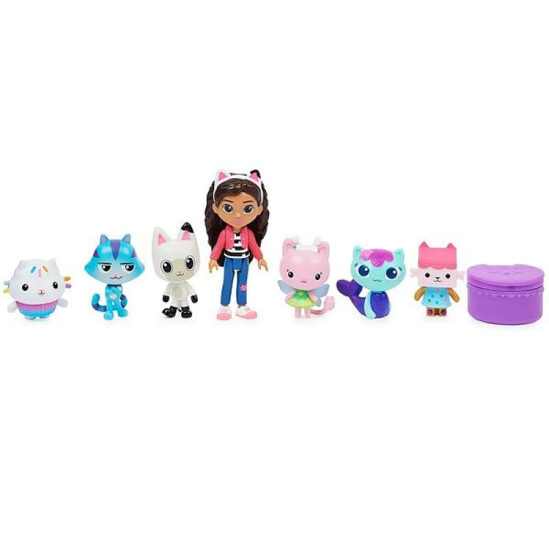 Conteúdo da embalagem: 1 Figura Gabby de 9cm, 1 Figura Kitty Fairy de 5cm, 1 Figura Cakey Cat de 4cm, 1 Figura Pandy Paws de 6cm, 1 Figura CatRat de 5cm, 1 Figura Baby Box Cat de 4cm, 1 Figura Mercat de 4cm e 1 Dollhouse Delivery com Acessório Surpresa