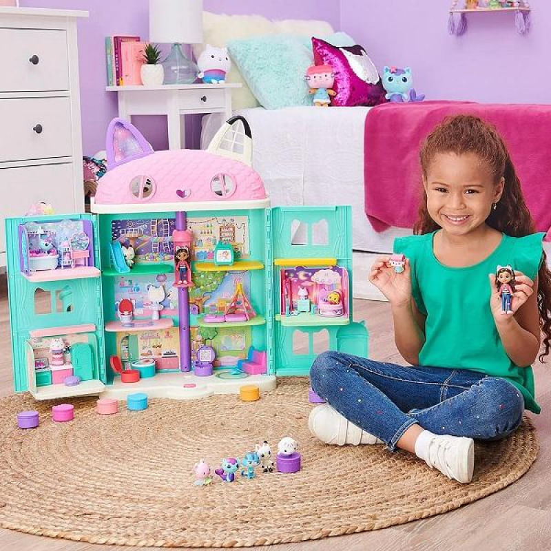 O que você encontrará dentro? Após a revelação, use sua imaginação para encenar suas próprias aventuras na casa de bonecas com Gabby e seus gatos.