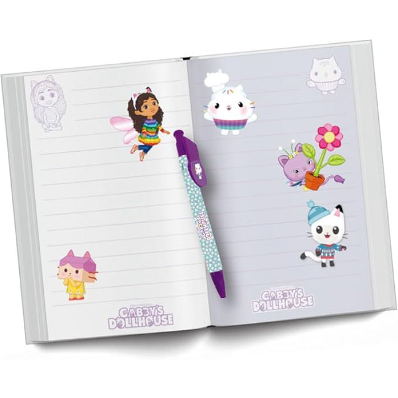 Ideal para escrever histórias, registrar o dia a dia, desenhar ou guardar segredos, o diário acompanha caneta e cartelas de adesivos que deixam a experiência mais divertida e personalizada. Além de estimular a criatividade, a imaginação e a expressão pessoal, é o companheiro perfeito para crianças fãs do universo Gabbys Dollhouse.