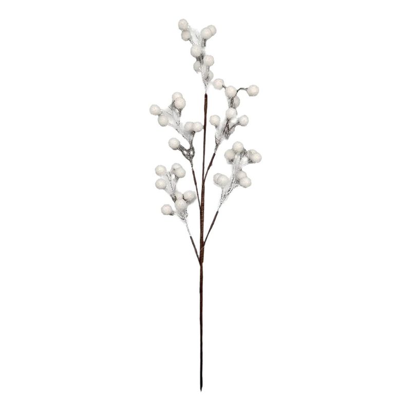 Galho Pick Natalino Azevinhos Branco Com Neve De 70 Cm