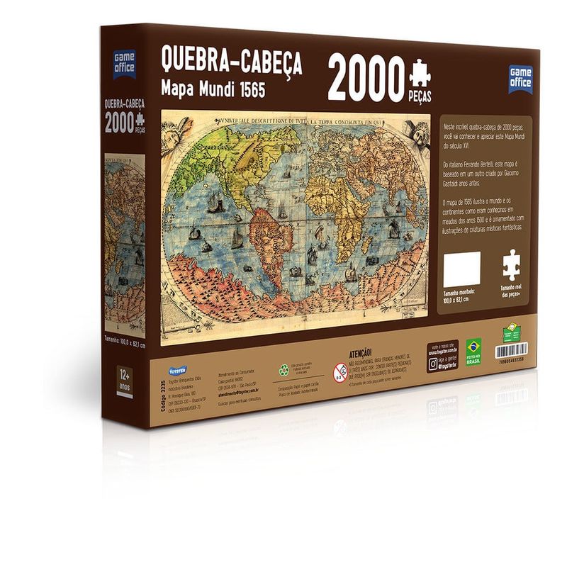 Mergulhe no desafio e na beleza do Game Office Quebra-Cabeça 2000 Peças Mapa Mundi da Toyster, ideal para quem busca um passatempo estimulante e educativo. Com peças que formam um mapa antigo do mundo, este quebra-cabeça exige concentração e atenção, perfeito para maiores de 12 anos que amam desafios e querem aprimorar habilidades cognitivas. - Quebra-cabeça com 2000 peças de alta qualidade e encaixe preciso - Imagem detalhada do mapa mundi de 1565, para apaixonados por história e geografia - Tamanho final amplo, proporcionando uma experiência imersiva (100 x 62 cm) - Estimula o raciocínio lógico, paciência e coordenação motora fina - Produto certificado e recomendado para jovens e adultos Garanta momentos únicos de entretenimento e aprendizado com um produto que combina arte, história e desafio — perfeito para o seu home office ou espaço de lazer. Aproveite a exclusividade desse quebra-cabeça que transforma tempo livre em conhecimento e diversão. Especificações: Código de Barras: 7896054032356 Restrição de Idade: Não recomendável para menores de 3 anos por conter peças pequenas que podem ser engolidas. Código do Fabricante: 3235 Aviso: As cores podem variar entre as imagens mostradas acima e o produto. Imagens meramente ilustrativas. Certificado: Certificado pelos Órgãos Autorizados - OCP´S (Organismos de Certificação de Produtos) Peso: 1,113 Kg Faixa Etária: 12+ Material: Papel, papel-cartão Dimensões (AxLxC): 40 x 10 x 28 cm Produto Certificado: 006878/2022 Itens Inclusos: 1 Quebra-cabeça Este produto é original? Sim, é um produto original da marca Toyster. Imagens meramente ilustrativas. As estampas e cores dos produtos podem variar de acordo com o lote disponível em estoque.