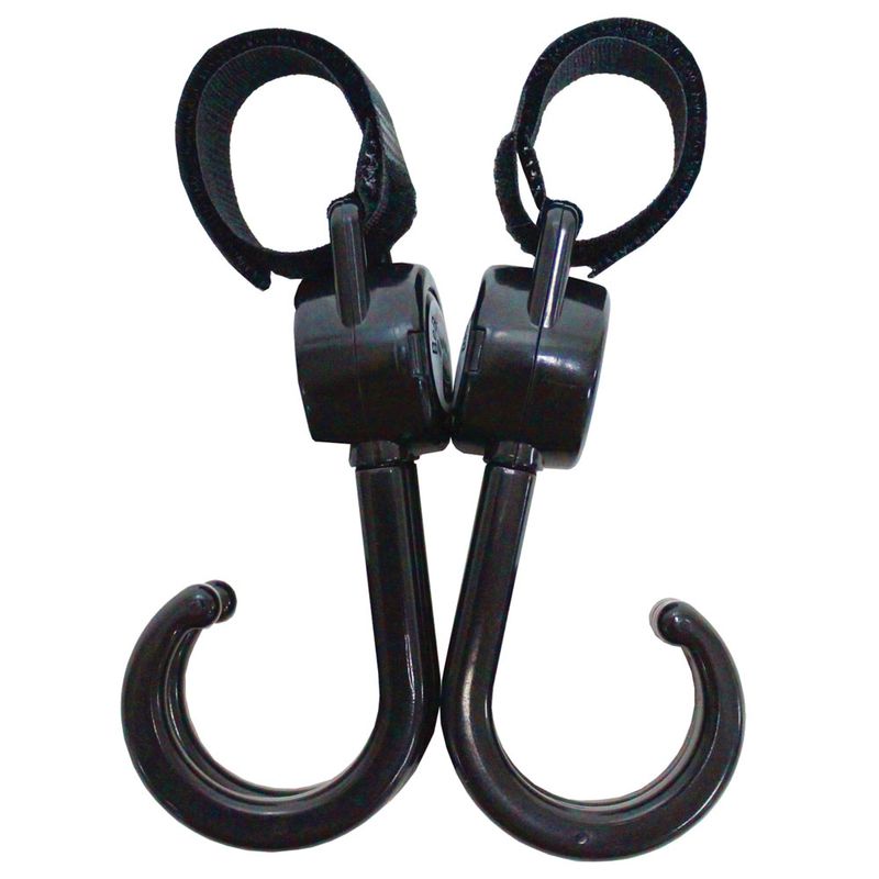 O gancho é giratório em 360º, suporta até 5 kg e é super fácil de instalar e desinstalar. Seu fecho de velcro se adapta à maioria dos carrinhos.