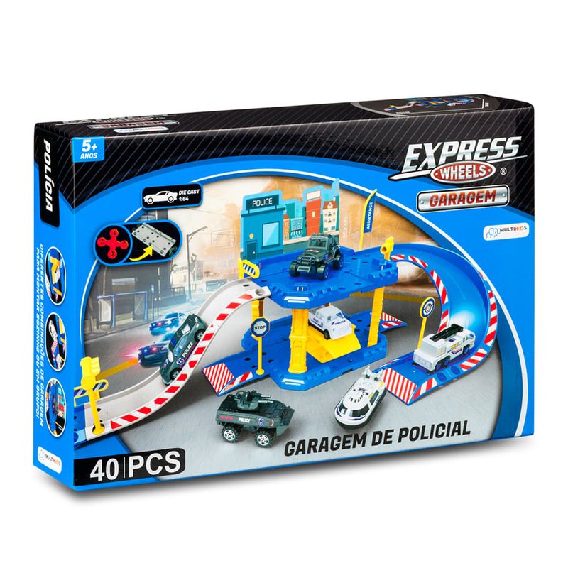Diferentes combinações de garagem para montar com Express Wheels Garagem da Multikids!A Express Wheels Garagem de Polícia 40 Peças possui 55cm de comprimento quando montada, ruas, rampas e sinalizações para brincar! Acompanha 1 carrinho die-cast para brincar sozinho ou em grupo de ser um policial de verdade! *Desenvolve a coordenação motora, concentração e raciocínio lógico das crianças por meio da brincadeira.Imagens meramente ilustrativas.