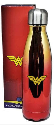 Garrafa alumínio degrade vermelha e dourada personalizada do Símbolo da Mulher-Maravilha uma das super-heroínas mais famosas da DC Comics e do Mundo.