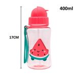 A Garrafinha Buba Frutti foi desenvolvida com materiais de alta qualidade e conta com a estampa da fruta preferido das crianças. Muita diversão e praticidade no momento de fazer a transição da mamadeira para o copo. Ideal para viagens, passeios ou levar para a escola, ela possui canudo em silicone, proteção de uma tampa flip-top e pulseira com velcro. É um produto livre de BPA e tampa retrátil Higiênica