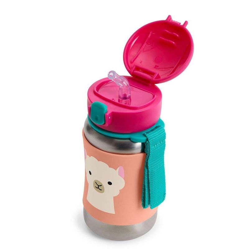 A Garrafa de Aço Inox Zoo Lhama da Skip Hop deixa a temperatura do líquido fresco por mais tempo. Ela vem com capa de silicone antiderrapante para proteger as mãozinhas dos pequenos. Com capacidade de 350 ml, acompanha alça que se prende a qualquer coisa, tampa pop-up para que o canudo flexível permaneça limpo. ESPECIFICAÇÕES: