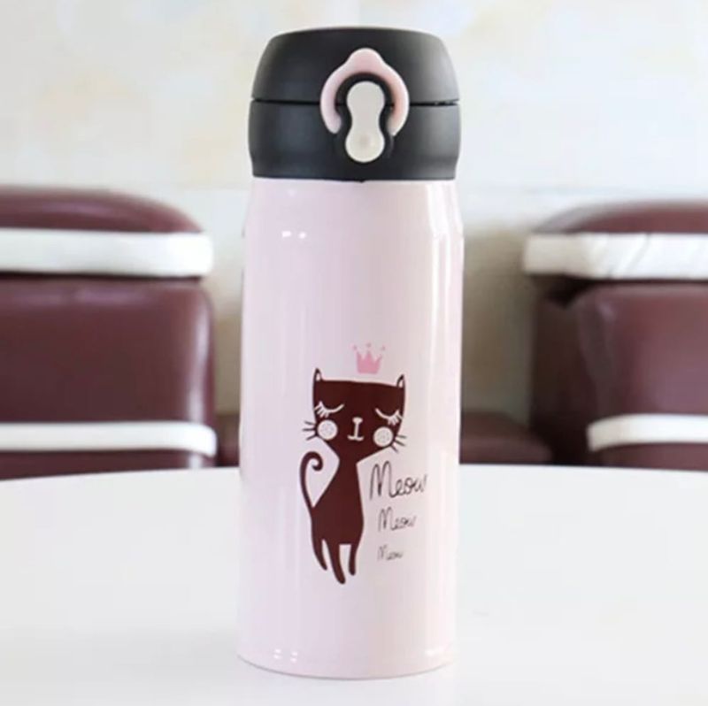 Garrafa Térmica Escolar Vac Cup Infantil 350ml CAT Rosa