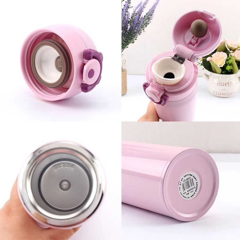 Garrafa Térmica Escolar Vac Cup Infantil 500ml Listra Rosa