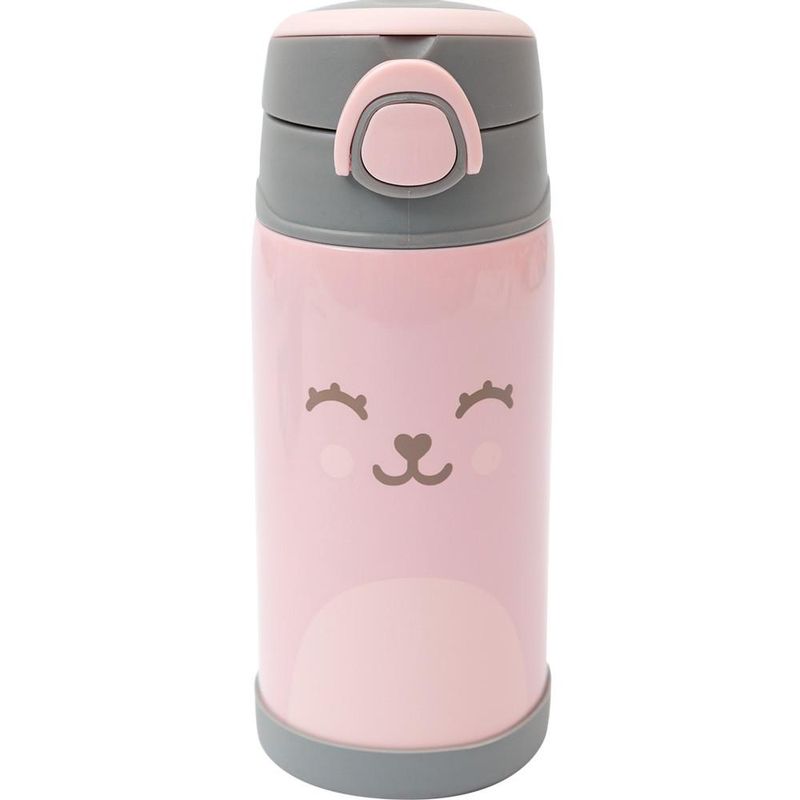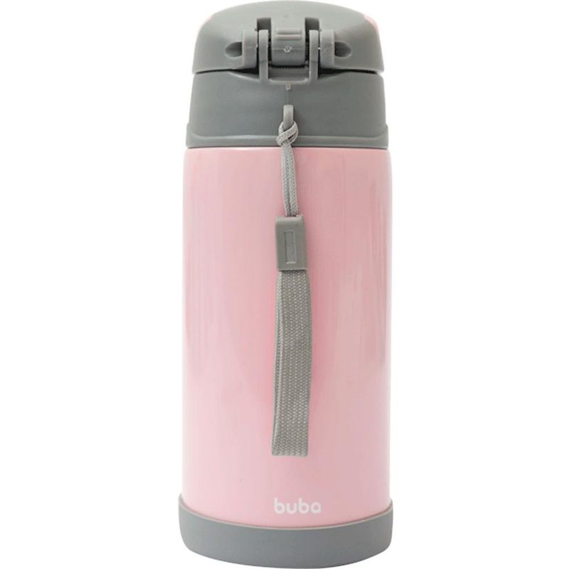 Garrafa Térmica Parede Dupla Com Canudo Gumy Rosa 400ml Buba