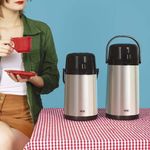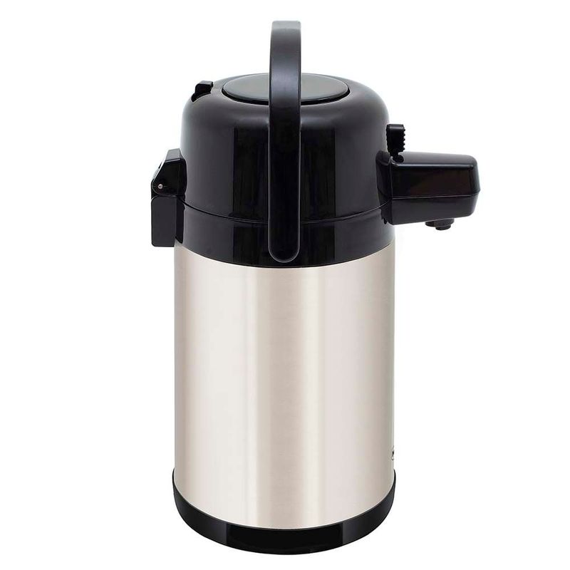 A GT Total Inox Airpot 1,9 L é a opção perfeita para quem busca uma Garrafa Térmica robusta com design tradicional e muita eficiência! Ela vai bem para armazenar um bom café, aquele chá especial ou até a água quente para o seu chimarrão.Com alça e cabeça fixas ao corpo da Térmica, oferece maior segurança durante o transporte e o manuseio. Sua tecnologia Airpot garante melhor vedação e pressão no bombeamento dos líquidos e conta ainda com base giratória e sistema corta-pingos que facilitam ainda mais o ato de servir as bebidas sem fazer sujeira. Além disso, possui trava de segurança no topo da cabeça, que quando fechada, impede o bombeamento dos líquidos ? perfeita para ser utilizada com segurança em ambientes com crianças, por exemplo.Composta por corpo e ampola em aço inoxidável, a GT Total Inox Airpot 1,9 litros proporciona maior conservação térmica com qualidade e durabilidade. São tantos atrativos que fica difícil não pedir a sua, não é?
