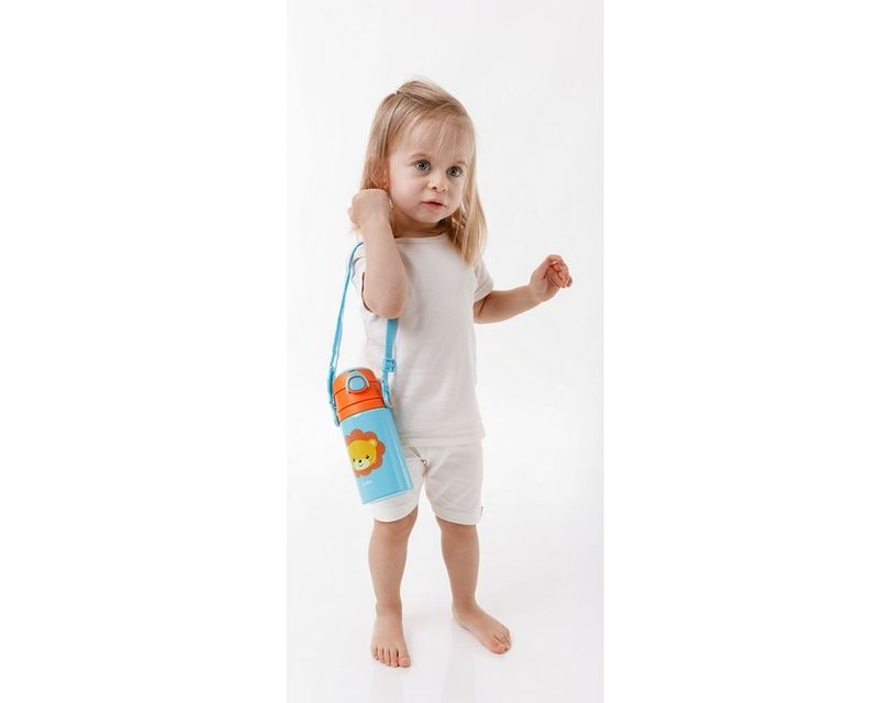 Garrafinha Alumínio com Canudo Animal Fun LEÃO