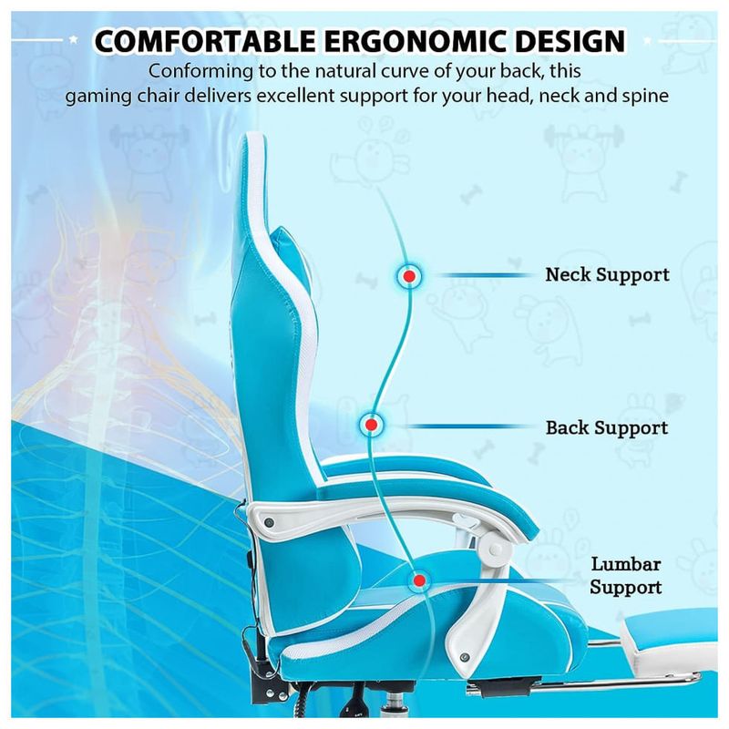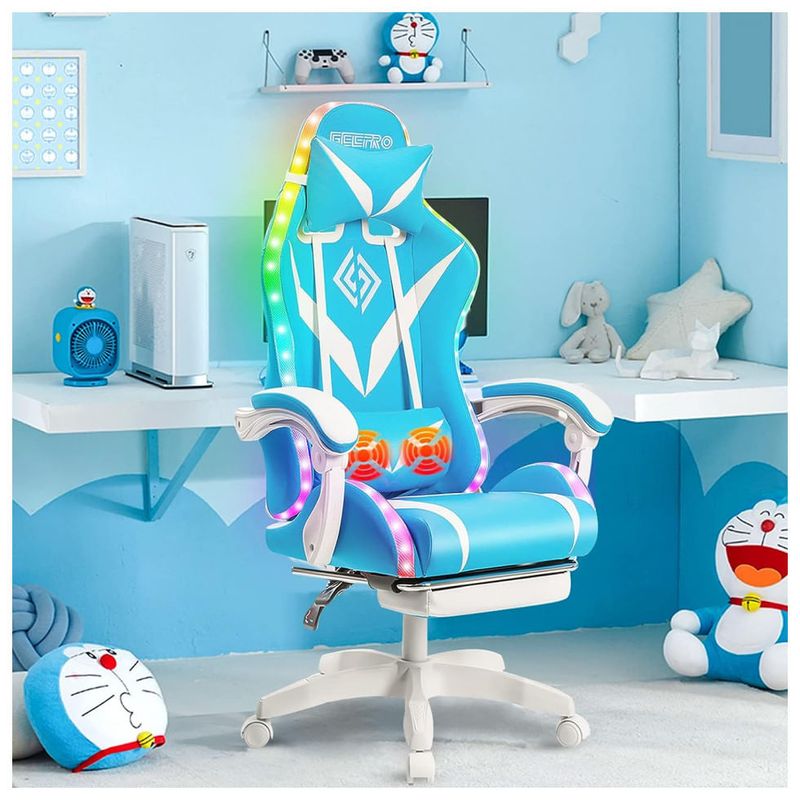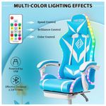 Ergonomic Massage Gaming Chair with Lights Colorful RGB Led lights strip surrounding Up to 358 flicker patterns 7 static monochrome Speed and brightness adjustment Package Includes Gaming Chair Accessories Assembly Tools You need to assemble it by yourself If you have any questions during installation, we will help you solve it ASAP, thank you Specification Back Rest Reclining Angle 90 135 Adjustable Height Range 10CM Applicable Height 155 , 5ft 6ft 3in Overall Dimension L x W x H 60x60x121 131cm , 23.6x23.6x47.6 51.6 Backrest Dimension 50x82cm , 19.7x32.3 Seat Dimension 45x43cm , 17.7x16.9 Comfortable Headrest 2 POINTS Lumbar Massage Thickened Sponge Cushion Padded Linkage Armrests Class 3 Gas Lift Weight Capacity 397lbs Smooth Rolling Casters LED light remote control Gaming Chair Massage with Speakers Bluetooth and RGB LED Lights Gaming Chair Massage with RGB LED Lights Gaming Chair with Massage Ergonomic Mesh Office Chair 2 Points Lumbar Massage Colorful RGB LED Lights Bluetooth Music Speaker Adjustable Headrest Adjustable Lumbar Support Material PVC LeatherSpongeSteel Nylon MeshSpongeSteel Nylon Max. Load Bearing 180KG, 397lbs 113KG, 250 lbs Color YellowWhite, BlueWhite, RedBlack, WhiteBlack, BlueBlack, YellowBlack, PurpleBlack, GreenBlack YellowWhite, BlueWhite, RedBlack, White, YellowBlack, PurpleBlack, GreenBlack White, Black